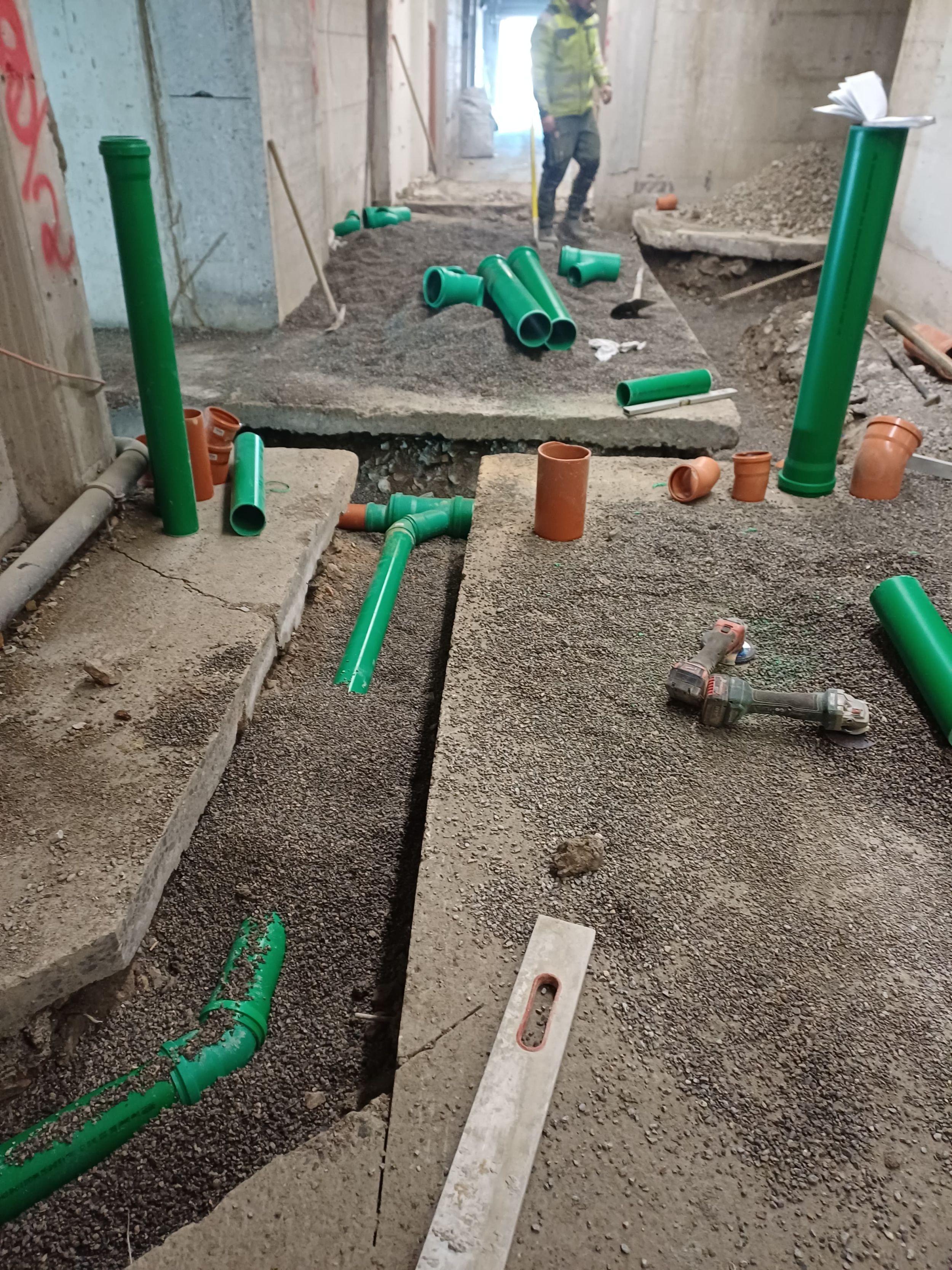 Ein zentraler Schritt war die Grundkanalverlegung, die mittlerweile abgeschlossen ist. Parallel dazu wurden weitere Bereiche vorbereitet und teilweise bereits begonnen: